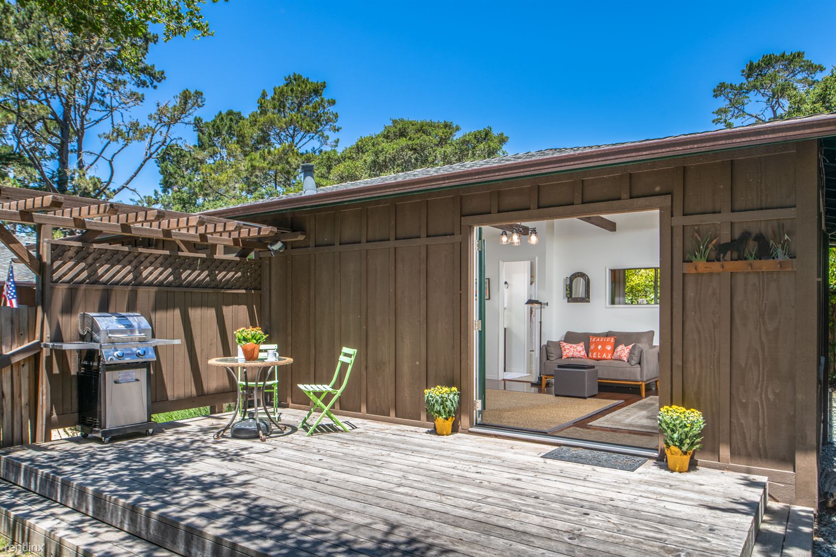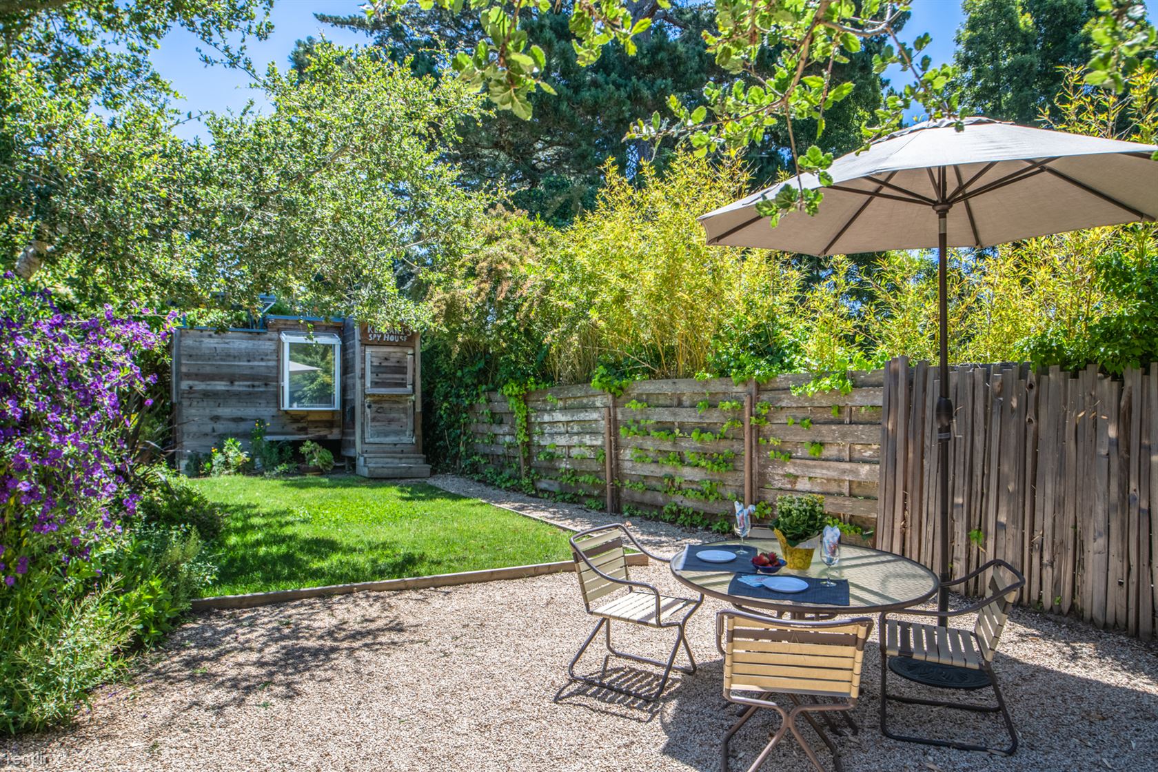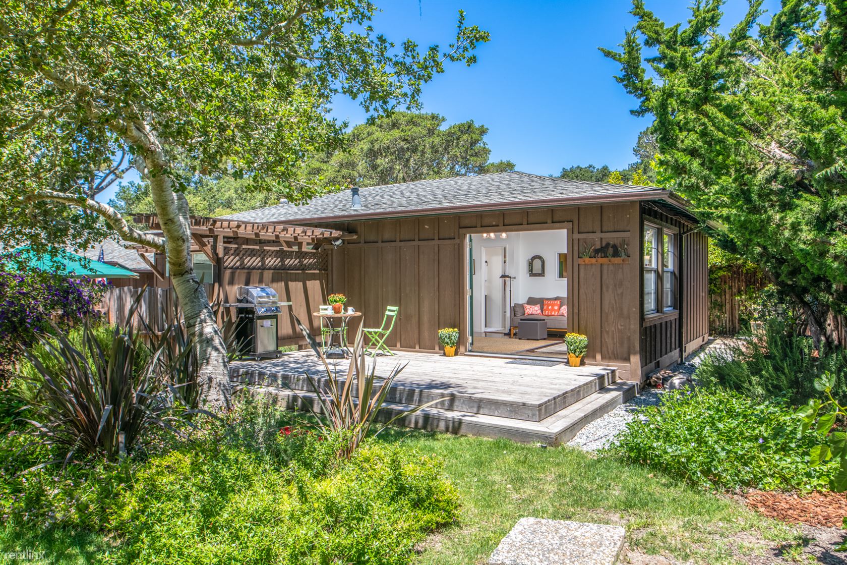 ***Please Do Not Disturb Tenants or Go Onto The Property Without the Listing Agent!*** **Photos of the newly furnished home coming soon!** Welcome to Bonne Amie! Sleeps 2 adults and 1 child **For more details about specials for this home, see the Sanctuary Vacation Rentals website or call our office directly. A charming cottage, newly renovated and surrounded by gardens inside a privacy fence, on a quiet tree-lined street that’s also close to area attractions. The 2-bedroom, 2-bath home features a front deck with patio seating overlooking a garden area with lavender, succulents and rosemary, as well as a small turf area, all inside a tall wooden fence that gives it a secluded feel and separates it from the vacation rental home at the front of the lot. Perfect for a couple with a small child, the furnished home offers large windows that let in generous amounts of light and tall ceilings that give it a spacious ambiance, and hardwood floors for easy cleanup and maintenance. The 800-square-foot cottage features a kitchen with subway tile and newer appliances, as well as a pull-out faucet and gas stove. Newly remodeled bathrooms offer a shower in the master bath and a tub-shower combo in the other. A stacked washer and dryer is available, and parking for two vehicles in a covered carport is also a plus. It’s just a 10-minute walk to shopping and dining in downtown Carmel, or a few minutes by car to the beach. It’s also a 10-minute drive to local attractions such Pebble Beach, Pacific Grove, and Cannery Row and the Monterey Bay Aquarium. Property Features: Beautiful setting in Carmel-by-the-Sea Furnished guest house behind main house Garden and lawn area with patio seating Serenity and privacy behind tall wooden fence Covered parking for one car Off-street driveway parking for a second car Newly renovated interiors Living room with dining area Hardwood floors Subway tile and newer appliances in kitchen Stacked washer and dryer Privacy film on bedroom windows (RLNE4450462)