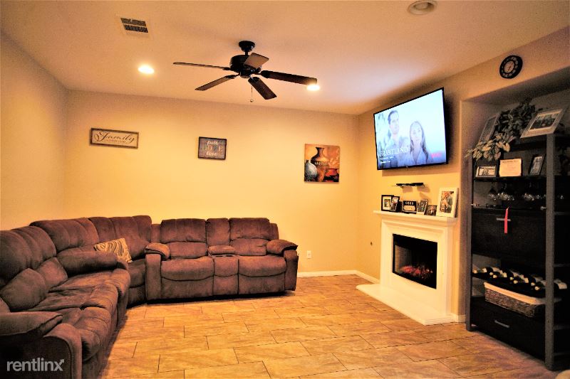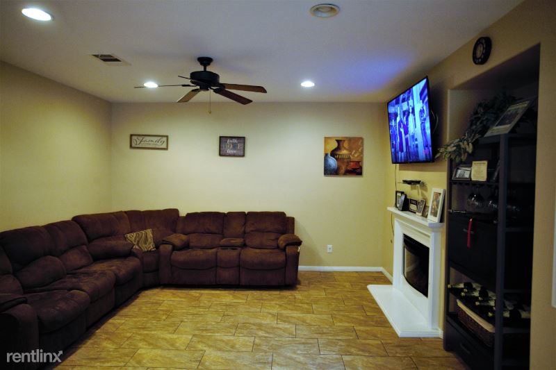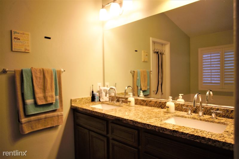 This amazing home is located in the exclusive guard gated enclave of Greer Ranch. Featuring 4b/2.5b, 3 car garage. Natural light throughout. First floor has open gourmet kitchen featuring granite countertops, center island, stainless steel appliances, oak cabinetry and 5 burner cook top. Plenty of shelving space for storage. Also on first floor is half bathroom, and office/den. Open family room w/ electric fireplace. Large dining and entertaining area. Window shutters throughout add a stylish look and easy to maintain. Upstairs features a master suite with double sinks, granite countertops, separate shower, soaking bathtub, and large walk-in closet. Three additional bedrooms upstairs and double sink vanity bathroom. Laundry room is conveniently located upstairs along with Samsung washer and dryer. Huge backyard. Solar panels installed on roof which saves renter annually in electricity.