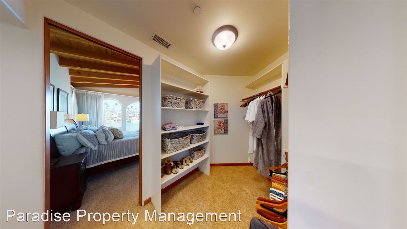 The first master suite has wood beam vaulted ceilings, custom wall sconces, a large walk in closet and en-suite bathroom with dual vanities, and the second master suite features a stone gas fireplace, amazing water views, vaulted wood beam ceilings, en-suite bathroom, and walk-in closet.